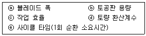 아래는 도저의 작업량에 영향을 주는 변수들이다. 이 중 도저의 작업능력에 비례하는 변수로 짝지어진 것은?