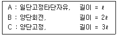 보기와 같은 A, B, C 장주가 같은 재질, 같은 단면이라면 임계 좌굴화중의 관계가 옳은 것은?