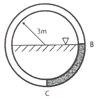 그림과 같이 안지름이 3m인 수도관에 정지된 물이 절반만큼 채워져 있다. 길이 1m의 수도관에 대하여 곡면 B-C 부분에 가해지는 합력의 크기는 약 몇 kN 인가? (문제 오류로 가답안 발표시 4번이 답안으로 발표되었으나, 확정답안 발표시 전항 정답 처리 되었습니다. 여기서는 가답안인 4번을 누르면 정답 처리 됩니다.)