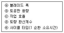 다음 보기는 불도저의 작업량에 영향을 주는 변수들이다. 이들 중 작업량에 비례하는 변수로 짝지어진 것은?
