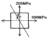 그림과 같은 평면응력상태에서 σx=300MPa, σy=200MPa이 작용하고 있을 때 재료 내에 생기는 최대전단응력(τmax)의 크기와 그 방향(θ)은?