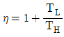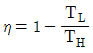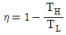 이론적인 카르노 열기관의 효율(η)을 구하는 식으로 옳은 것은? (단, 고열원의 절대온도는 TH, 열원의 절대온도는 TL이다.)