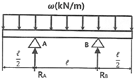그림과 같은 균일 단면의 돌출보에서 반력 RA는? (단, 보의 자중은 무시한다.)