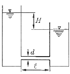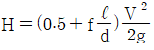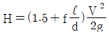 그림과 같이 날카로운 사각 모서리 입출구를 갖는 관로에서 전수두 H는? (단, 관의 길이를 ℓ, 지름은 d, 관 마찰계수는 f, 속도수두는