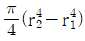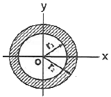 그림과 같은 빗금 친 단면을 갖는 중공축이 있다. 이 단면의 O점에 관한 극단면 2차모멘트는?
