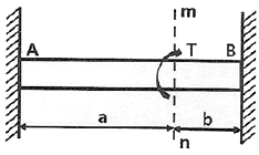 양단이 고정된 축을 그림과 같이 m-n 단면에서 T만큼 비틀면 고정단 AB에서 생기는 저항 비틀림 모멘트의 비 TA/TB는?