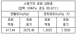 압력 1000kPa, 온도 300℃ 상태의 수증기(엔탈피 3051.15 kJ/kg, 엔트로피 7.1228 kJ/kgㆍK)가 증기터빈으로 들어가서 100kPa 상태로 나온다. 터빈의 출력 일이 370kJ/kg일 때 터빈의 효율(%)은?