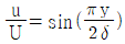 평판 위를 지나는 경계층 유동에서 경계층 두께가 δ인 경계층 내 속도 u가