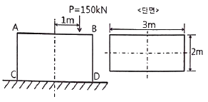직사각형 단면의 단주에 150kN 하중이 중심에서 1m 만큼 편심되어 작용할 때 이 부재 AC에서 생기는 최대 인장응력은 몇 kPa 인가?