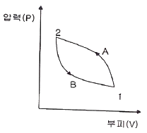 상태 1에서 경로 A를 따라 상태 2로 변화하고 경로 B를 따라 다시 상태 1로 돌아오는 가역 사이클이 있다. 아래의 사이클에 대한 설명으로 틀린 것은?