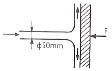 그림과 같이 비중이 0.83인 기름이 12m/s의 속도로 수직 고정평판에 직각으로 부딪치고 있다. 판에 작용하는 힘 F는 약 몇 N 인가?