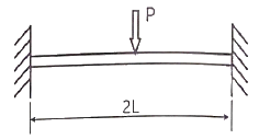 그림과 같이 길이가 2L인 양단고정보의 중앙에 집중하중이 아래로 가해지고 잇다. 이때 중앙에서 모멘트 M이 발생하였다면 이 집중하중(P)의 크기는 어떻게 표현되는가?