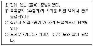 다음 4가지 경우에서 ( ) 안의 물질이 보유한 엔트로피가 증가한 경우는?