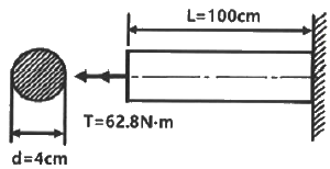 그림에서 고정단에 대한 자유단의 전 비틀림각은? (단, 전단탄성계수는 100GPa 이다.)