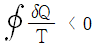계가 비가역 사이클을 이룰 때 클라우지우스(Clausius)의 적분을 옳게 나타낸 것은? (단, T는 온도, Q는 열량이다.)
