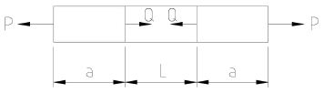 길이가 L+2a인 균일 단면 봉의 양단에 인장력P가 작용하고, 양 단에서의 거리가 a인 단면에 Q의 축 하중이 가하여 인장될 때 봉에 일어나는 변형량은 약 몇 cm인가? (단, L=60cm, a=30cm, P=10kN, Q=5kN, 단면적 A=4cm2, 탄성계수는 210GPa이다.)