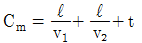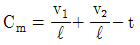 불도저의 시간당 작업량 계산에 필요한 사이클 타임Cm(min)은 다음 중 어느 것인가? (단, ℓ=운반거리(m), v1 =전진속도(m/min), v2 =휴진속도(m/min), t=기어변속시간(min)이다.)