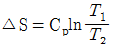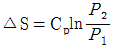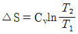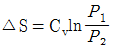단위질량의 이상기체가 정적과정 하에서 온도가 T1에서 T2로 변하였고, 압력도 P1에서 P2로 변하였다면, 엔트로피 변화량ΔS는? (단, Cv와 Cp는 각각 정적비열과 정압비열이다.)