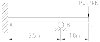 다음 그림과 같이 집중하중 P를 받고 있는 고정 지지보가 있다. B점에서의 반력의 크기를 구하면 몇 kN인가?