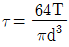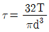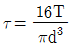 비틀림 모멘트 T를 받고 있는 직경이 d인 원형축의 최대전단응력은?