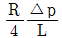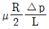 반지름 R인 파이프 내에 점도 μ인 유체가 완전발달 층류유동으로 흐르고 있다. 길이 L을 흐르는데 압력 손실이 Δp만큼 발생했을 때, 파이프 벽면에서의 평균전단응력은 얼마인가?