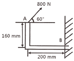 그림과 같이 800N의 힘이 브래킷의 A에 작용하고 있다. 이 힘의 점 B에 대한 모멘트는 약 몇 N·m 인가?