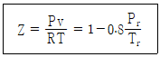 어떤 물질에서 기체상수(R)가 0.189 kJ/(kg·K), 임계온도가 305K, 임계압력이 7380kPa이다. 이 기체의 압축성 인자(compressibility factor, Z)가 다음가 같은 관계식을 나타낸다고 할 때 이 물질의 20℃, 1000kPa 상태에서의 비체적(v)은 약 몇 m3/kg 인가? (단, P는 압력, T는 절대온도, Pr은 환산압력, Tr은 환산온도를 나타낸다.)