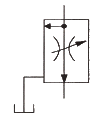 그림과 같은 유압기호가 나타내는 것은? (단, 그림의 기호는 간략 기호이며, 간략 기호에서 유로의 화살표는 압력의 보상을 나타낸다.)