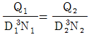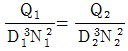 수차는 펌프와 마찬가지로 동일한 상사법칙이 성립하는데, 다음 중 유량(Q)과 관계된 상사법칙으로 옳은 것은? (단, D는 수차의 크기를 의미하며, N은 회전수를 나타낸다.)
