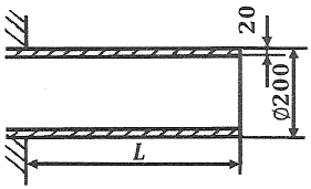 그림과 같이 두께가 20mm, 외경이 200mm인 원관을 고정벽으로부터 수평으로 4m만큼 돌출시켜 물을 방출한다. 원관 내에 물이 가득차서 방출될 때 자유단의 처짐은 약 몇 mm인가? (단, 원관 재료의 세로탄성계수는 200GPa, 비중은 7.8이고 물의 밀도는 1000kg/m3이다.)