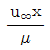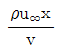 평판 위를 지나는 경계층 유동에서 레이놀즈 수는? (단, v는 동점성계수, u∞는 자유흐름 속도, μ는 점성계수, x는 평판 선단으로부터의 거리, ρ는 밀도이다.)