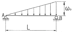 그림과 같이 삼각형으로 분포하는 하중을 받고 있는 단순보에서 지점 A의 반력은 얼마인가?
