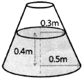 위가 열린 원뿔형 용기에 그림과 같이 물이 채워져 있을 때 아래 면에 작용하는 정수압은 약 몇 Pa인가? (단, 물이 채워진 공간의 높이는 0.4 m, 윗면 반지름은 0.3 m, 아래면 반지름은 0.5 m이다.)