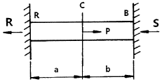 양단이 고정된 균일 단면봉의 중간단면 C에 축하중 P를 작용시킬 때 A, B에서 반력은?