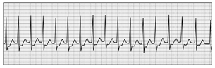 심정지 환자가 발생하여 현장에서 환자를 처치하고 심전도를 확인하였다. 모든 심전도 확인 시 환자의 맥박이 촉지되지 않았을 때, 전기충격이 필요한 리듬으로 옳은 것은?