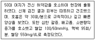 다음 환자의 최초 처치로 가장 옳은 것은?