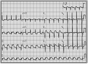 40대 남자가 흉통을 호소하고 있다. 환자의 12유도 및 우측 가슴유도(V4R) 심전도는 다음과 같다. 현재 환자의 혈압이 80/60mmHg로 측정되었다면 가장 먼저 시행할 처치로 옳은 것은?