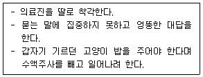 특별한 과거력 없이 독립적으로 일상생활을 하던 78세 여자가 폐렴으로 입원한 날 밤에 갑자기 다음과 같은 행동을 보인다면, 이 환자에게서 가장 의심되는 질환으로 옳은 것은?