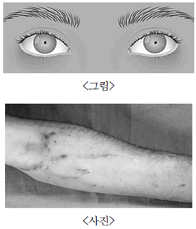23세 딸의 의식이 저하된다는 어머니의 신고로 출동하였다. 활력징후는 80/60 mmHg - 50회/분 - 8회/분 - 35.6 ℃이고 혈당은 95 mg/dL였다. 의식평가상 이름을 부르면 눈을 뜨며, 신체검진 결과가 다음(그림, 사진)과 같을 때, 이 환자에게 투여해야 할 치료제는?