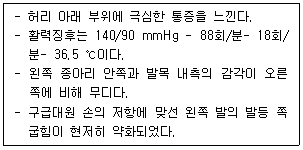 70대 여자가 가정 내 화장실에서 미끄러져 엉덩방아를 찧었다는 신고를 받고 출동하였다. 환자평가 결과가 다음과 같을 때, 의심할 수 있는 골절 부위로 옳은 것은?