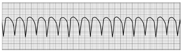56세 여자가 어지러움을 동반한 의식장애를 보인다. 혈압이 65/40 mmHg이고 심전도가 다음과 같을 때, 시행해야 할 처치로 옳은 것은?