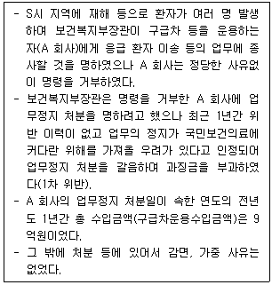 다음 내용을 읽고 「응급의료에 관한 법률」 및 같은 법 시행령, 시행규칙상 A 회사에 업무정지 처분을 갈음하여 부과한 과징금의 총금액으로 옳은 것은?