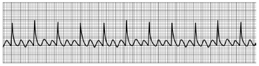 52세 남자가 어지러움과 가슴 불편함을 호소한다. 혈압 142/82 mmHg, 호흡 24회/분이며 심전도는 다음과 같을 때 적절한 처치로 옳은 것은? (「2020년 한국심폐소생술 가이드라인」 기준)