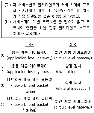 (가), (나)에 해당하는 침입차단시스템 동작 방식에 따른 분류를 바르게 연결한 것은?