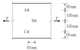 그림과 같은 볼트구멍이 있는 강판에 인장력 T가 작용할 때, 순단면적[mm2]은? (단, 볼트구멍의 직경 d=25mm, 강판의 두께 t=10mm이며, KDS 14 31 10을 따른다)