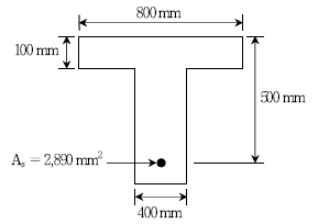 그림과 같은 T형보에 대한 등가 응력블록의 깊이 a[㎜]는? (단, fck=20MPa, fy=400MPa)