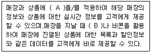 다음은 지능형홈 융합기술 중 스마트 쇼핑에 관한 설명이다. 내용 중 (A), (B)에 알맞은 단어의 조합은?