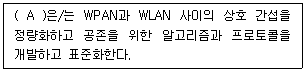 다음은 IEEE의 무선 개인영역 네트워크(WPAN) 표준에 대한 설명이다. (A)에 들어갈 알맞은 용어는?