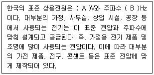 대한민국 표준 상용 전원에 대한 설명이다. (A)와 (B)에 적절한 것은?