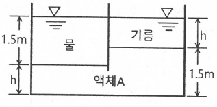 그림에서 물과 기름의 표면은 대기에 개방되어 있고, 물과 기름 표면의 높이가 같을 때 h는 약 몇 m 인가? (단, 기름의 비중은 0.8, 액체 A의 비중은 1.6이다.)